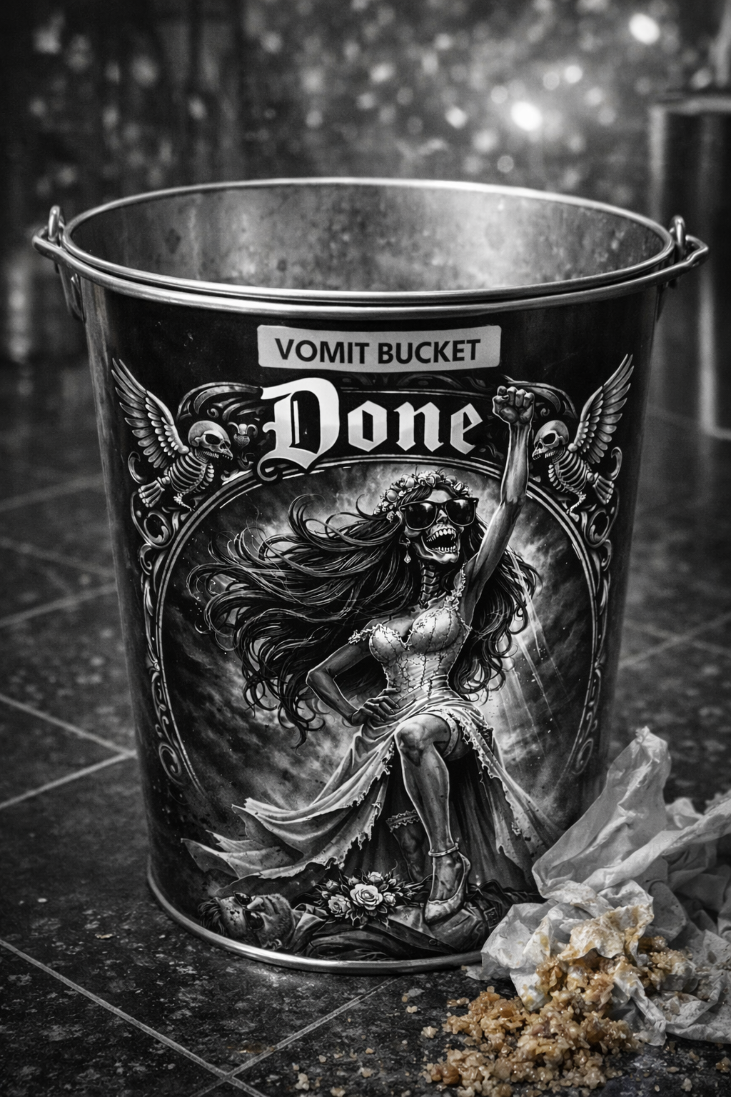 Der Done Vomit Bucket, hält, wenn du es nicht mehr halten kannst.